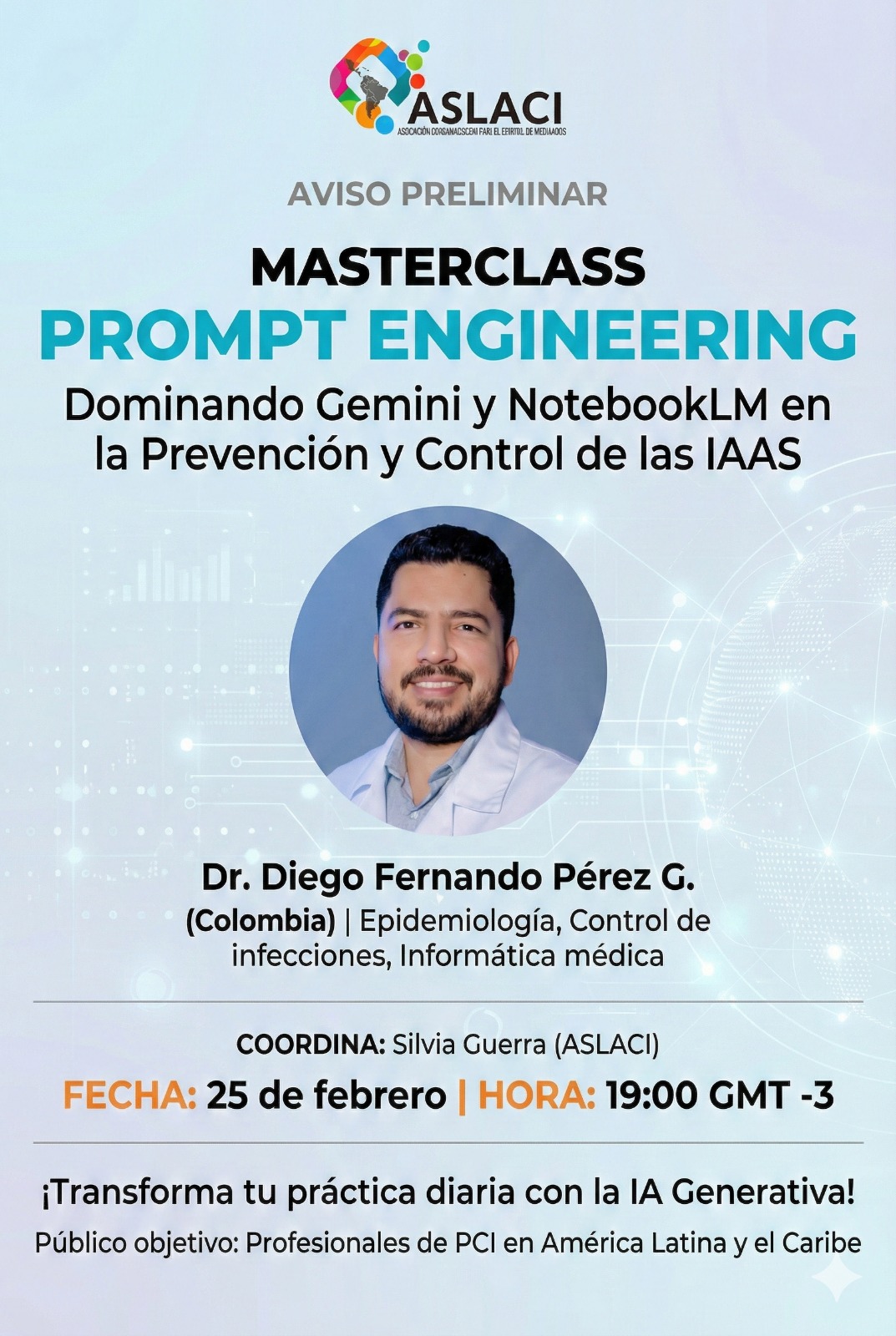 Cursos Dr Diego Fernando Pérez G. MASTERCLASS enero 22, 2026 Aslaci Entradas relacionadas Cursos Seminario Virtual Interfaz Humano Animal junio 10, 2025junio 10, 2025 Aslaci Cursos Eventos Webinar ASLACI Febrero 2025 enero 30, 2025septiembre 5, 2025 Aslaci